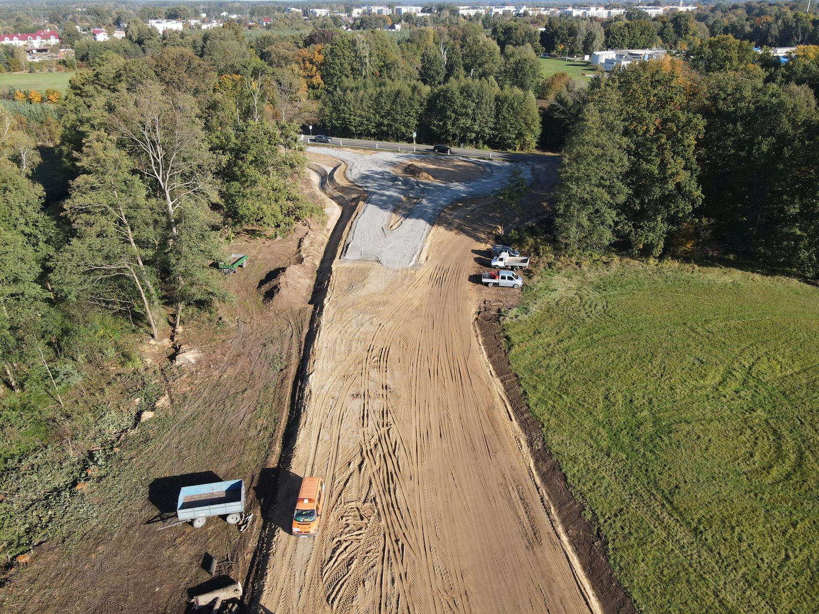 Obecnie trwa wykonanie warstwy wzmacniającej na głównym ciągu drogi, przepustów, nasypu pod konstrukcję DW 305 i warstwy wzmacniającej pod rondo przy ul. Celnej. Przystąpiono również do prac związanych z wykonaniem podpory 1 i 2 wiaduktu kolejowego nad linią relacji Warszawa – Berlin.