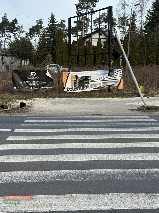 Jak wynika z relacji mieszkańców oraz przekazanych do redakcji zdjęć, słup sygnalizatora przy przejściu dla pieszych jest wyraźnie przechylony, a część elementów instalacji zwisa nad chodnikiem i w pobliżu przejścia.