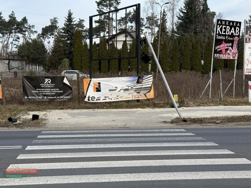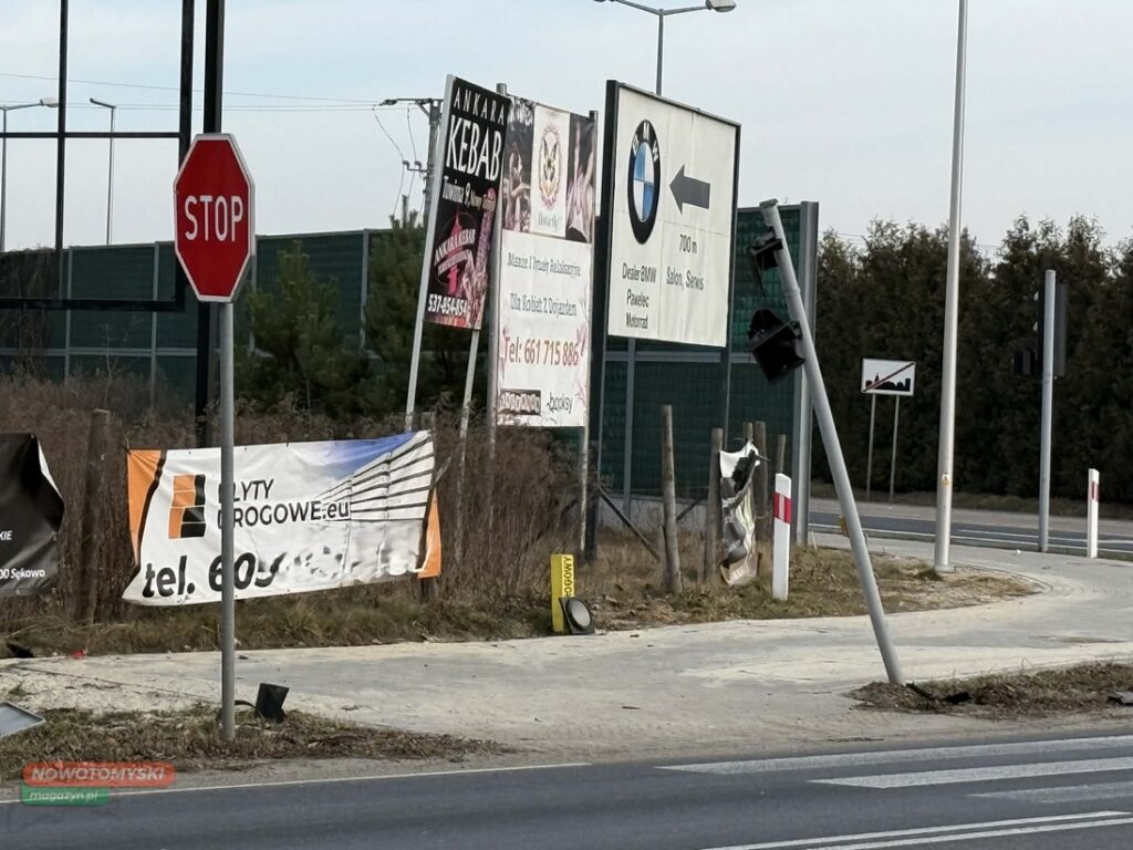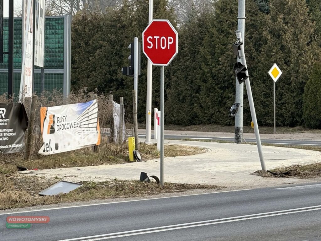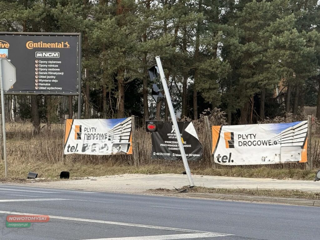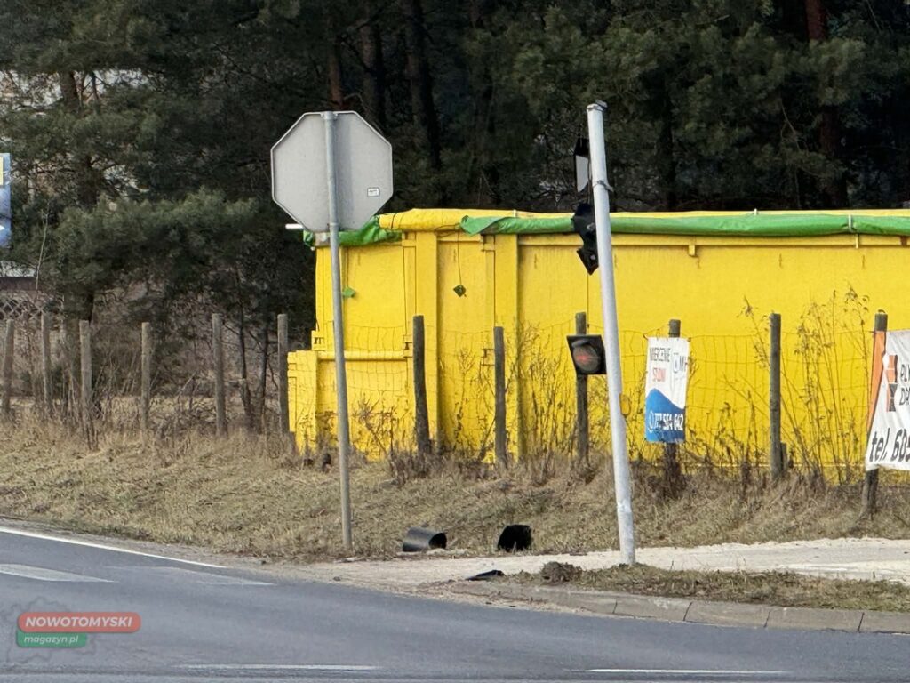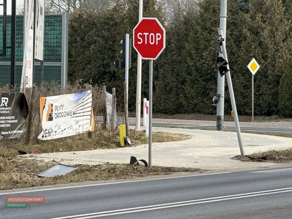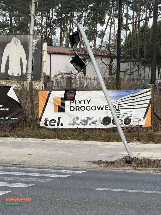 Według przekazanych informacji pozostała sygnalizacja na skrzyżowaniu działa prawidłowo, jednak uszkodzony element infrastruktury może stanowić zagrożenie dla pieszych oraz kierowców.