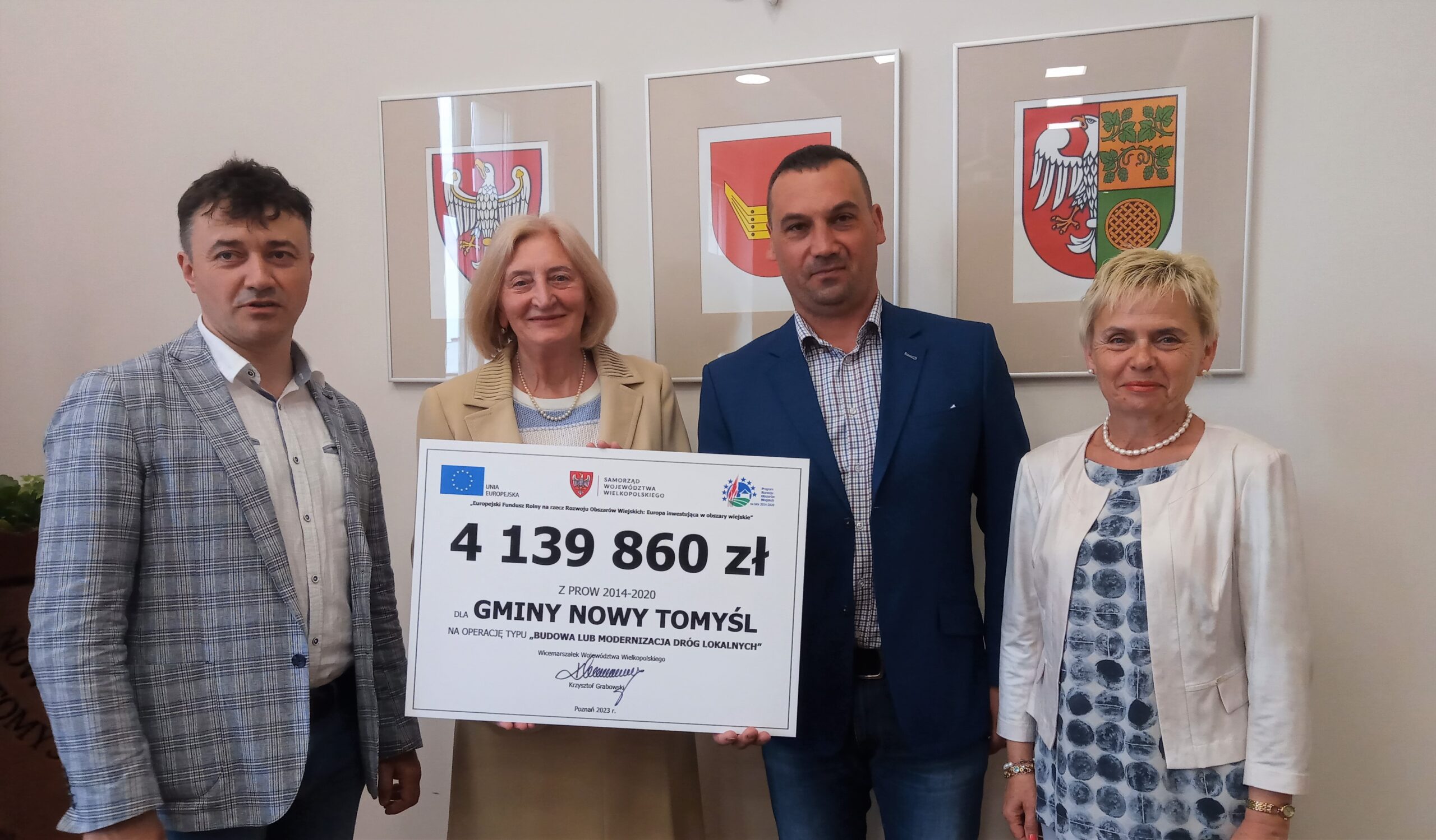 Umowę podpisali: Izabela Mroczek – Dyrektor Departamentu Programu Rozwoju Obszarów Wiejskich Urzędu Marszałkowskiego w Poznaniu – jako przedstawiciel Wicemarszałka Województwa Wielkopolskiego Krzysztofa Grabowskiego oraz Włodzimierz Hibner – Burmistrz Nowego Tomyśla i Łukasz Pilarczyk – Skarbnik Gminy.