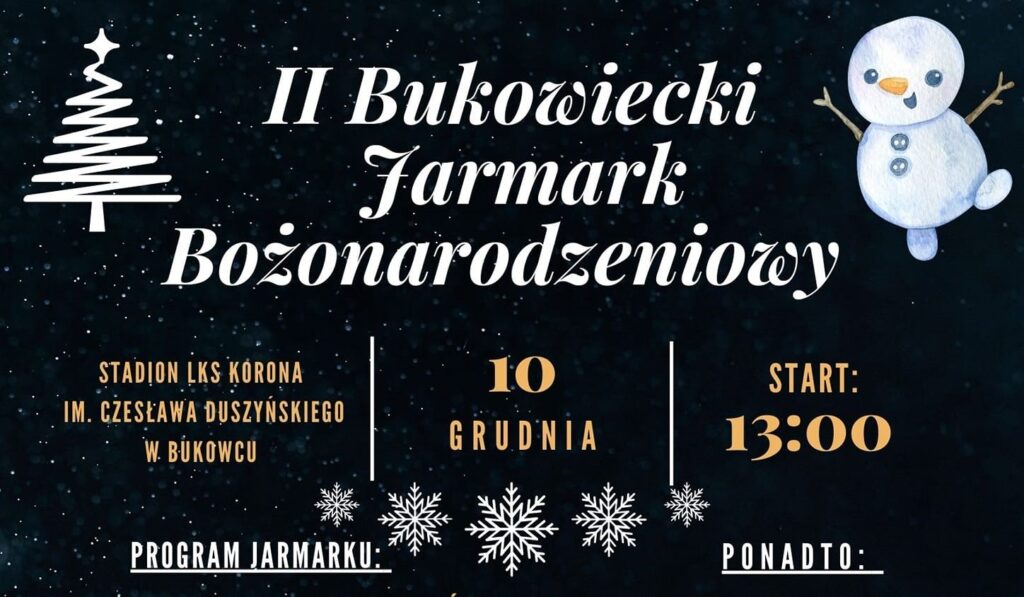 Zapraszamy na II BUKOWIECKI JARMARK BOŻONARODZENIOWY– kolorowy i radosny festiwal świątecznych upominków oraz słodkości, którego nie możecie przegapić. Przygotowaliśmy dla Was całą masę atrakcji i wyjątkowy, świąteczny zestaw wystawców i … Czytaj dalej II BUKOWIECKI JARMARK BOŻONARODZENIOWY – kolorowy i radosny festiwal świątecznych upominków oraz słodkości