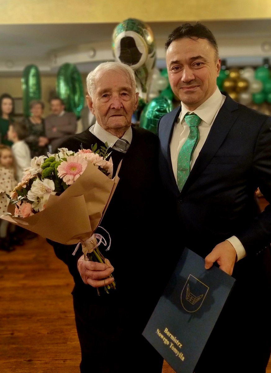 Podczas urodzinowej uroczystości, która odbyła się 12 stycznia br. obecny był Włodzimierz Hibner – Burmistrz Nowego Tomyśla, który złożył najserdeczniejsze życzenia oraz wręczył list gratulacyjny i kwiaty.