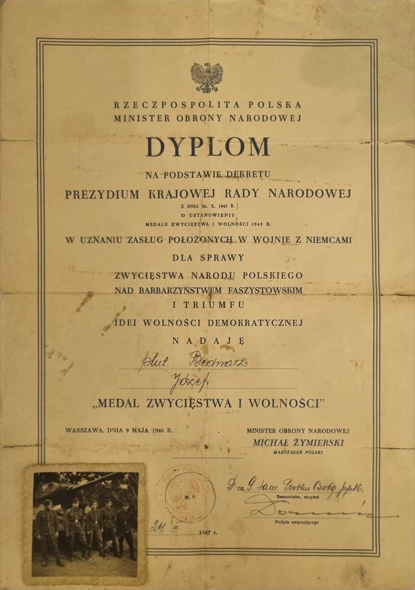 Pan Józef został odznaczony wieloma medalami zasługi m.in. w 1946 roku „MEDALEM ZWYCIĘSTWA I WOLNOŚCI” w uznaniu zasług położonych w wojnie z Niemcami, a w 2017 roku medalem ,,PRO PATRIA” za szczególne zasługi w kultywowaniu pamięci o walce o niepodległość Rzeczypospolitej Polskiej.