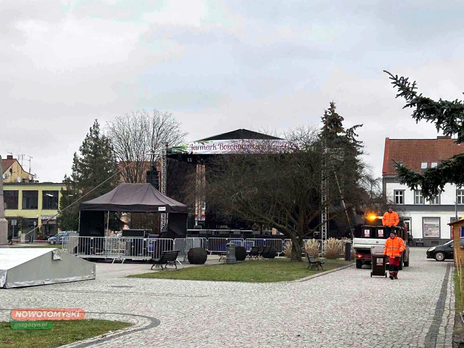 Przygotowania do Jarmarku Bożonarodzeniowego w Nowym Tomyślu! Już od godz. 10.00 targ zdrowej żywności i rękodzieła „SWOJAKI” na ul. Mickiewicza, a od 13.00 na Plcu Niepodległości rozpocznie się świąteczne muzykowanie.