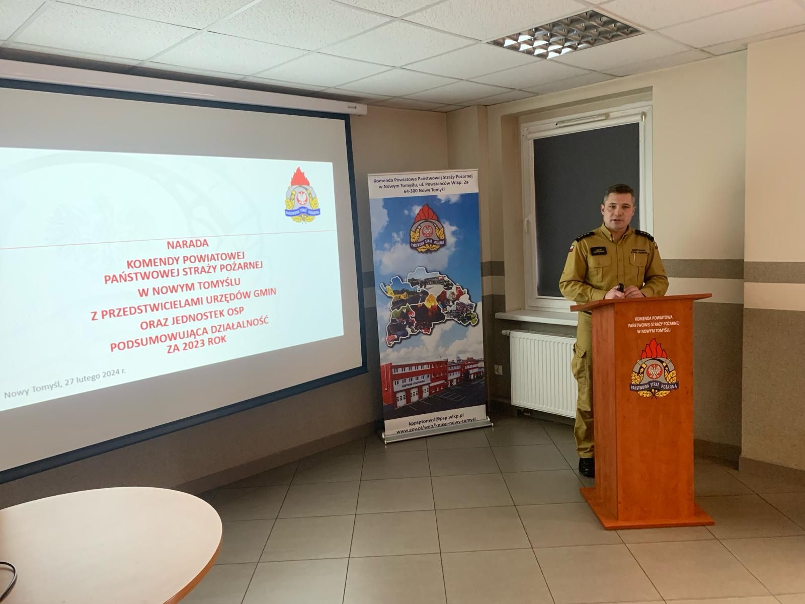 27 lutego 2024 roku w siedzibie Komendy Powiatowej Państwowej Straży Pożarnej w Nowym Tomyślu przeprowadzono naradę z przedstawicielami Urzędów Gmin, Komendantami Gminnymi OSP oraz Naczelnikami jednostek OSP w KSRG powiatu nowotomyskiego.