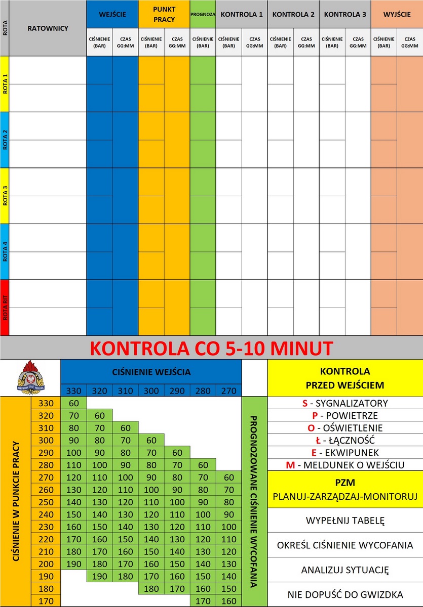 – ewidencjonowania i stały nadzór nad ilością strażaków pracujących w strefie zadymienia