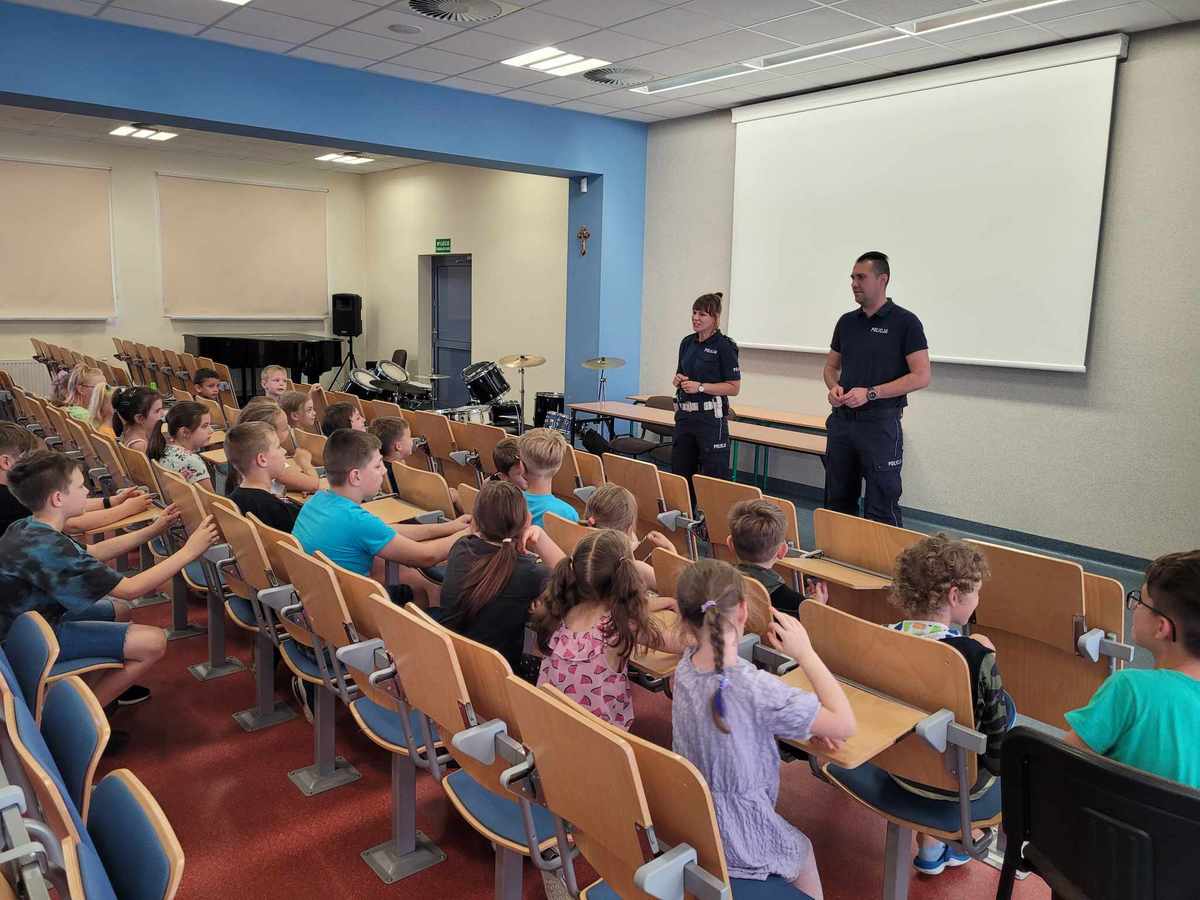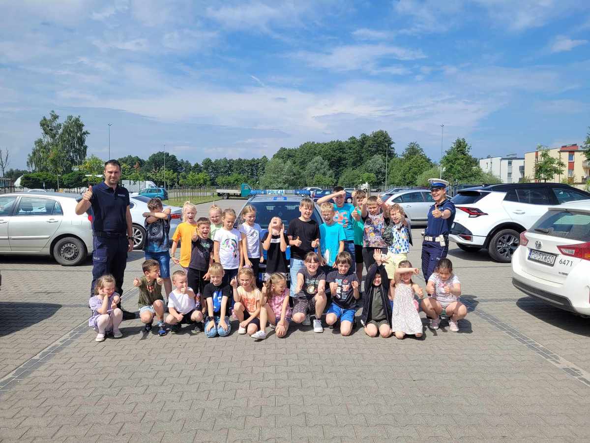 Wizyta policjantów z Komendy Powiatowej Policji w Nowym Tomyślu miała na celu podniesienie świadomości uczniów na temat szeroko rozumianego bezpieczeństwa podczas wakacyjnego wypoczynku. Dzięki spotkaniu uczniowie utrwalili sobie ważne zasady poruszania się na drodze, właściwego przechodzenia przez jezdnię, jak również bezpiecznego korzystania z roweru i kąpielisk.