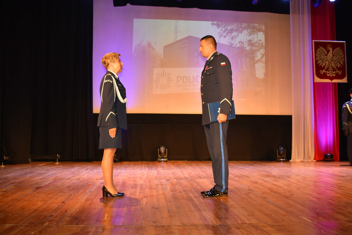 Głównym punktem uroczystości było wręczenie policjantom aktów mianowania na wyższe stopnie policyjne, rozkazów o awansach na stanowiska służbowe,a także wyróżnień i odznaczeń związkowych. Nie obyło się również bez wyróżnień dla osób spoza naszej instytucji, wspomagających lokalną Policję w działaniach na rzecz poprawy bezpieczeństwa mieszkańców.