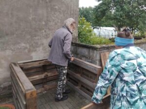 Efektem było powstanie kompostownika do kompostowania metodą na zimno – tak żeby odpadki z przepięknego ogródka mieszczącego się przy bibliotece nie trafiały nigdy więcej do brązowego pojemnika na odpady BIO.