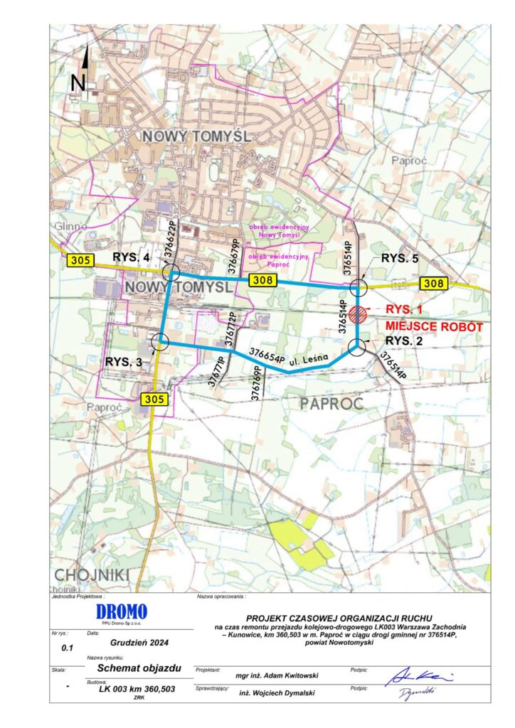 Mieszkańcy Nowy Tomyśl muszą przygotować się na czasowe utrudnienia w ruchu. W związku z remontem przejazdu kolejowego na linii LK 003, w kilometrze 360,503, przejazd zostanie całkowicie zamknięty.