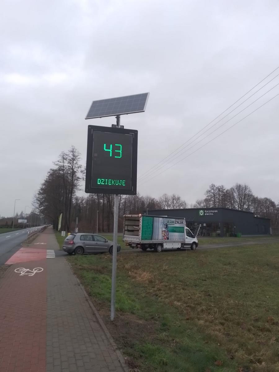 To jednak nie wszystko! Pojawiły się także wyświetlacze prędkości. Gdzie? Na ul. 3-go Stycznia, ul. Zbąszyńskiej oraz przy przedłużeniu ul. Sienkiewicza w Paproci. Wyświetlacze zasilane są panelem fotowoltaicznym i posiadają kompletny system radarowego pomiaru prędkości z wyświetlaniem aktualnej prędkości pojazdu odpowiednią „buźką ( 😊 lub ☹)” wraz z napisem „dziękuję” lub „zwolnij”.