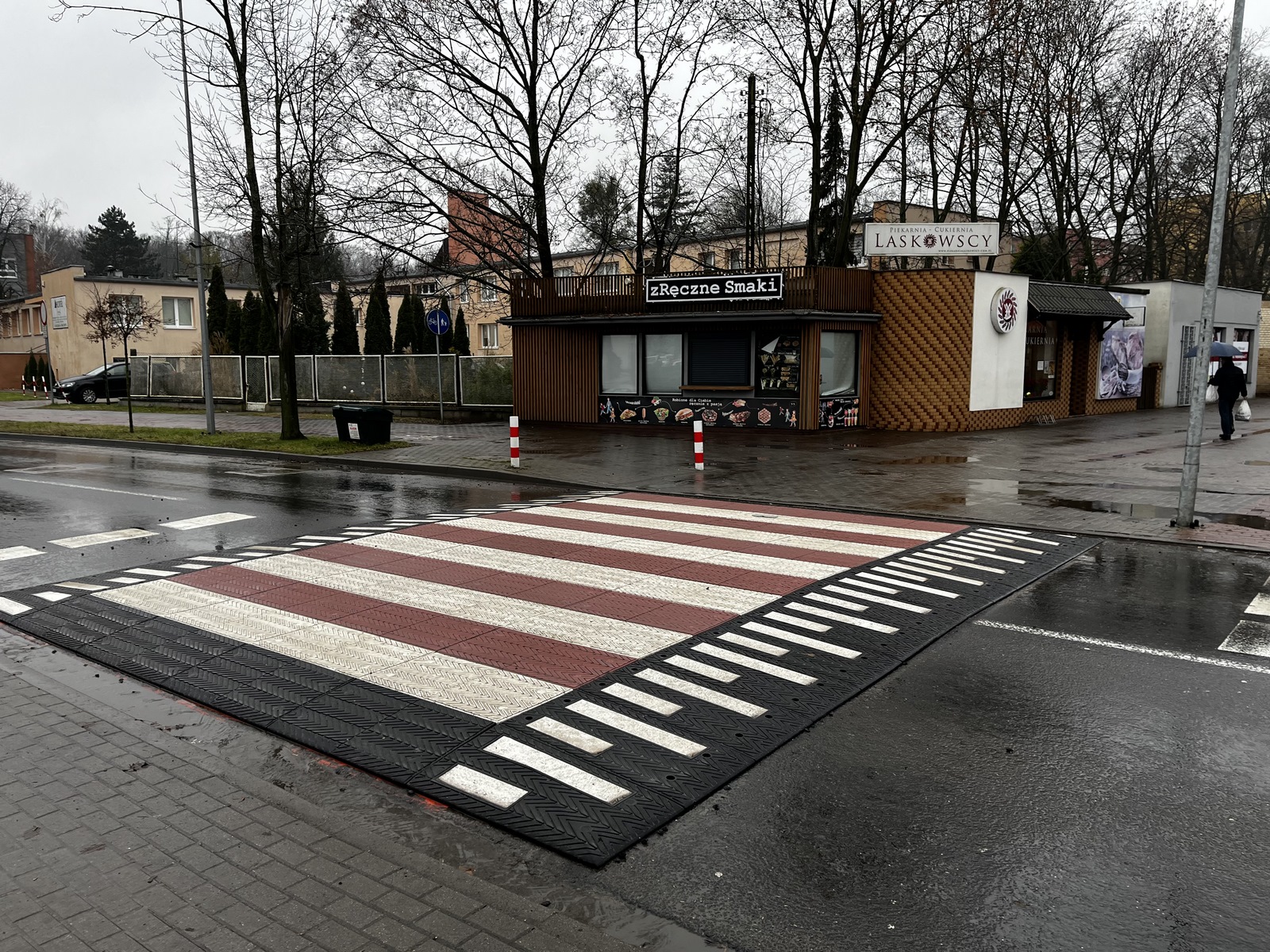 W centrum Nowego Tomyśla zamontowano czerwono-białe progi płytowe (podwyższone przejścia dla pieszych) na ul. Tysiąclecia oraz ul. Musiała.